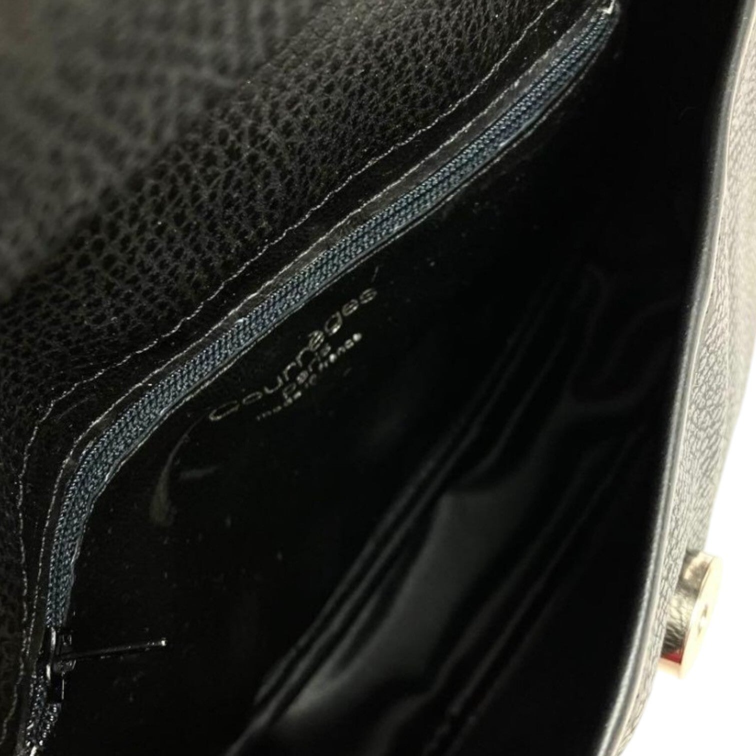 Pièce vintage authentique de la maison Courrèges, parfaite pour les amateurs de mode rétro et de maroquinerie française intemporelle.